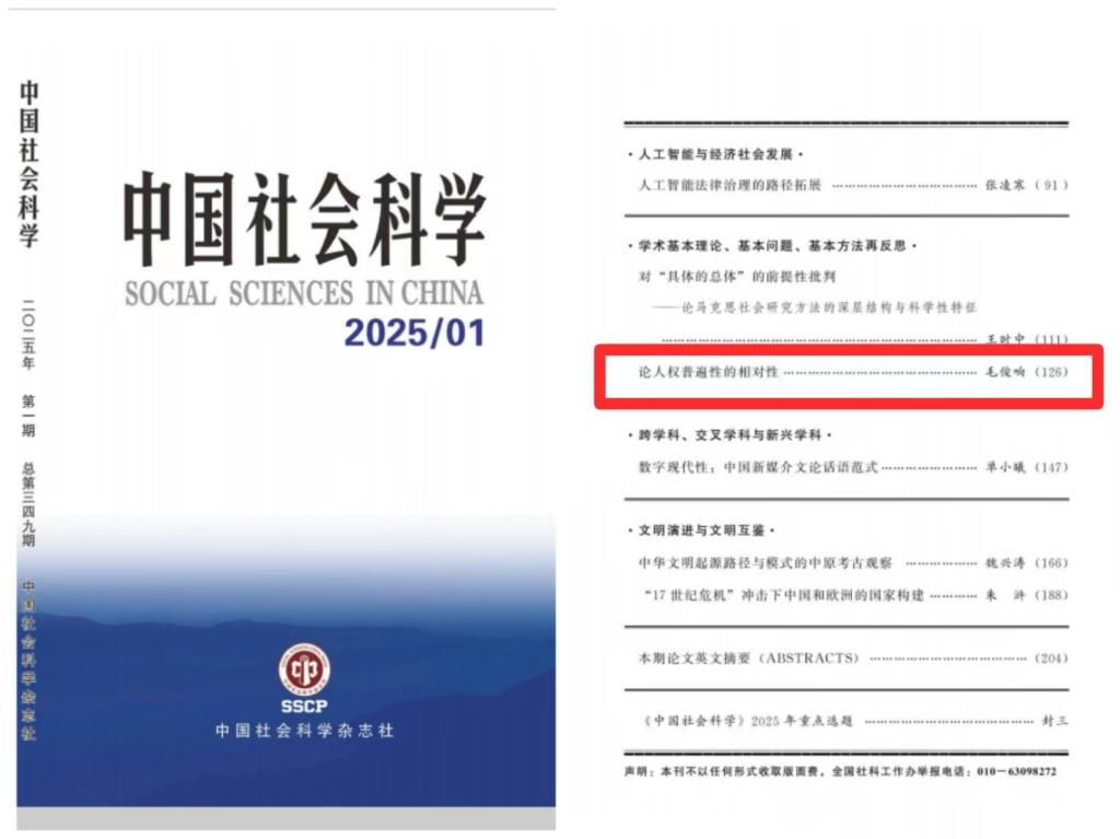 tapplay毛俊响教授在《中国社会科学》发表人权研究成果