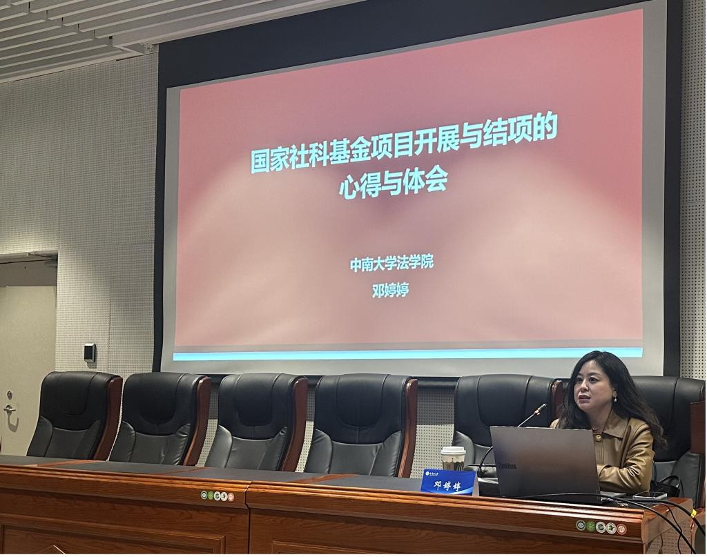 在“项目开展与结题”板块,外国语学院副院长范武邱教授强调,要合理规划研究进度,严格遵守国社科基金结题时限与要求,并从学科演进、总体原则、几对矛盾、基本要求四个方面分享了课题成果产出经验。法学院邓婷婷副教授从研究进度安排与执行、阶段性成果撰写与发表、最终成果撰写、结项材料整理以及专家鉴定关注点等方面指明了在结题报告撰写环节应注意的关键事项。